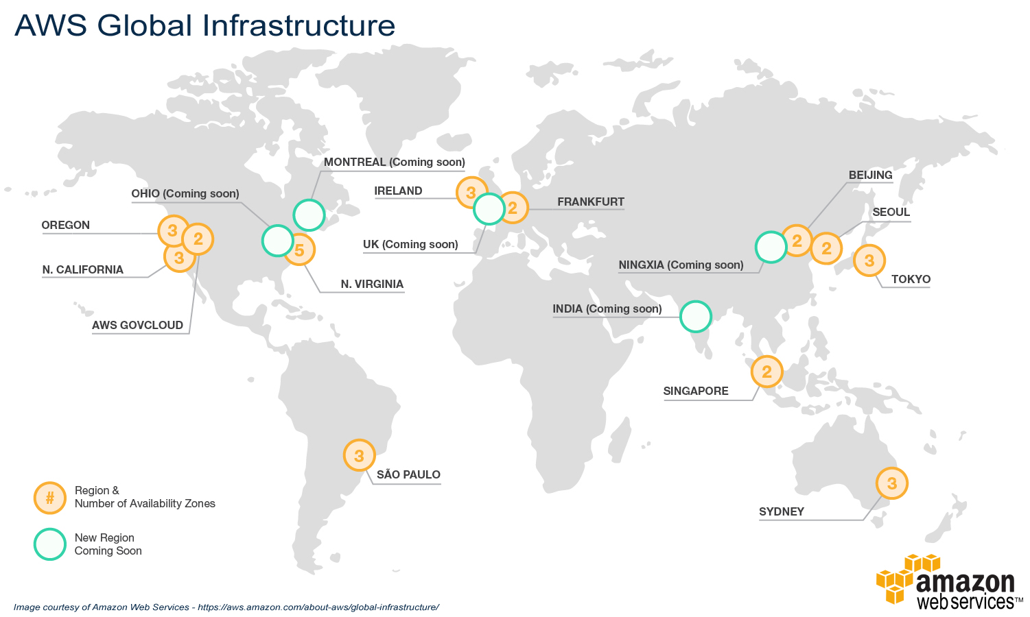 또한 하나의 지역에 여러개의 가용영역(이하 AZ)이 존재하며 AZ들은 전용 사설 네트워크를 통해 낮은 네트워크 응답시간을 보장